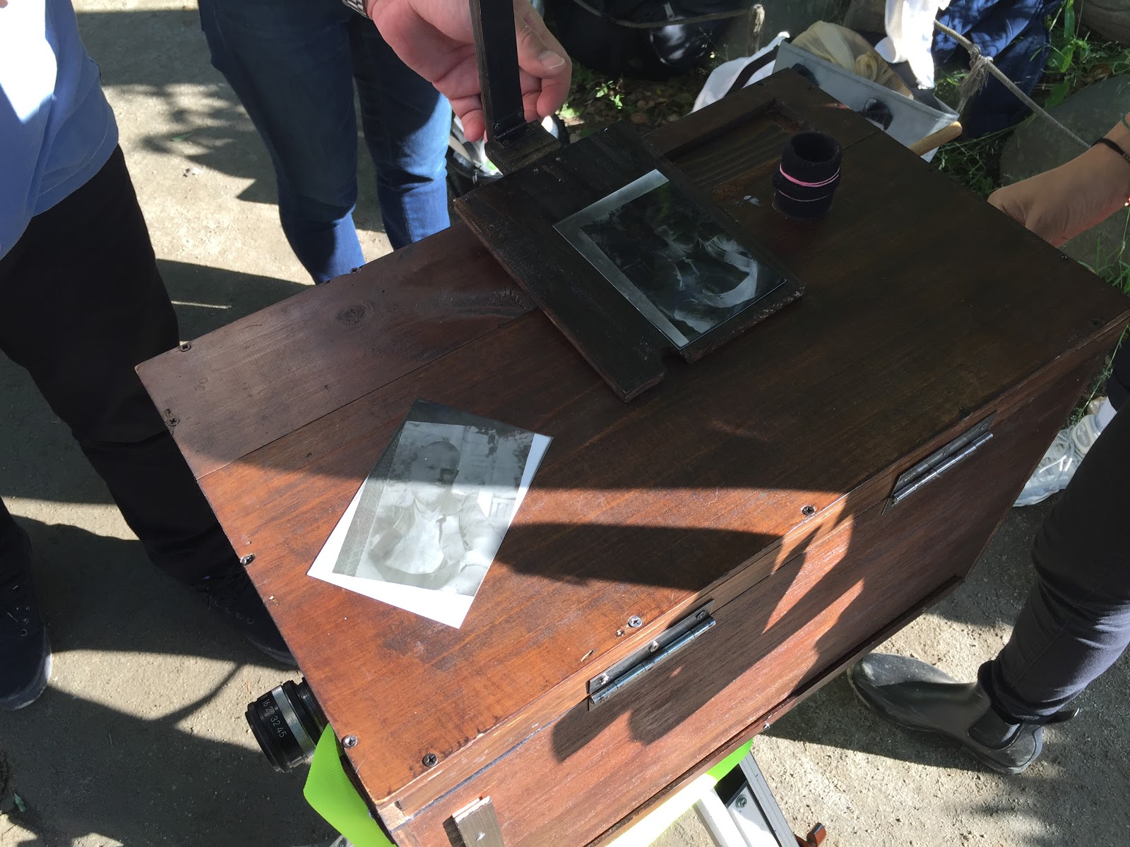 これが今回のワークショップで使ったカメラです。この箱がカメラです。木製のこの箱で、撮影から現像、プリント全てを行うことができます。