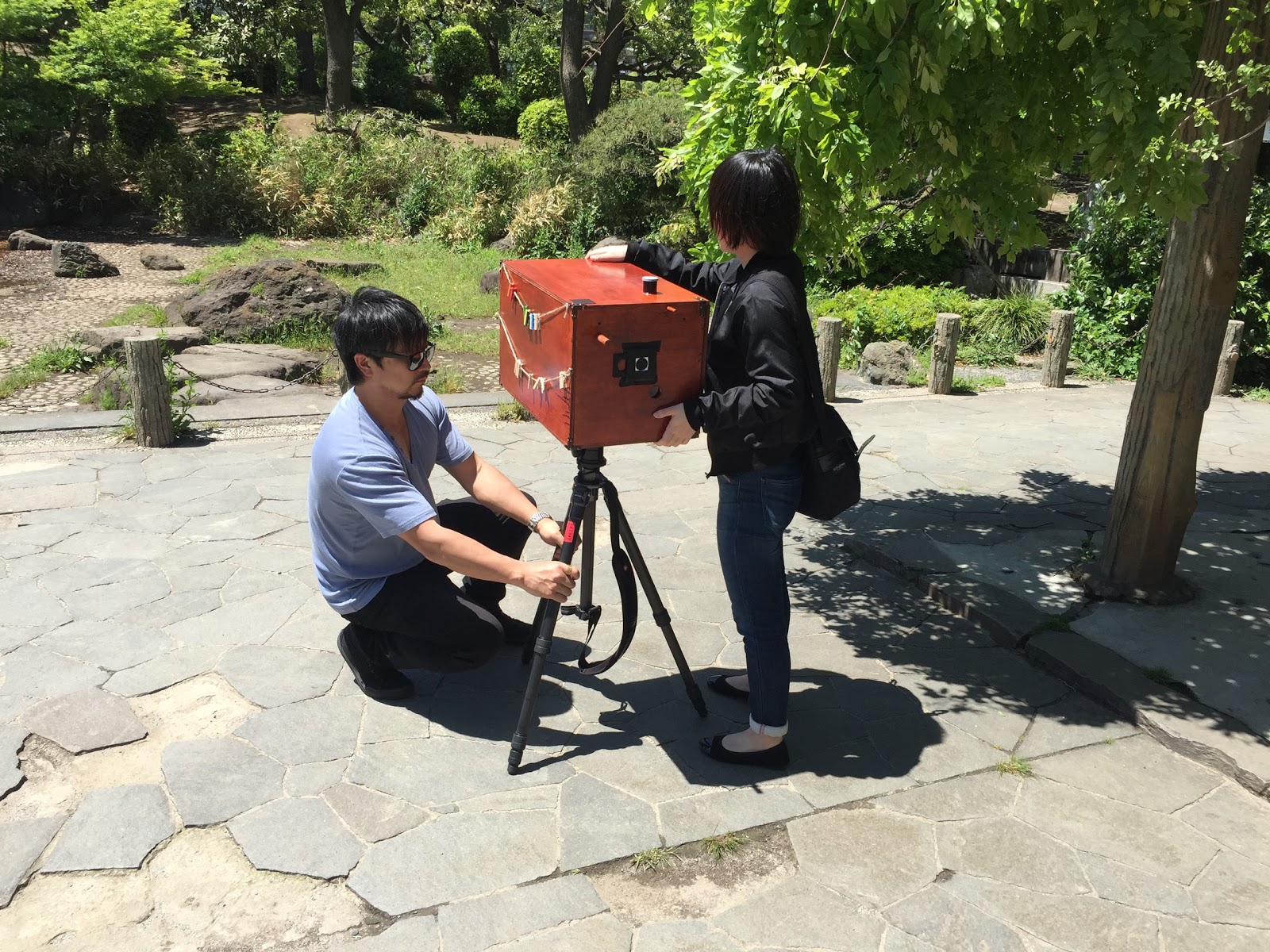この日の隅田公園はゴールデンウィークということもあって、老若男女国籍様々な人がのんびりと過ごされていました。池のほとりで水遊びをする子ども。ベンチに座って昼寝をするおっちゃん。タバコを吸って時間をつぶすおっちゃん。カメラを携えて神社に興奮する旅行者。結婚式用の撮影を行う新婚さん。皆、大掛かりで見慣れないアフガンボックスカメラが気になってちらちらと目をやります。